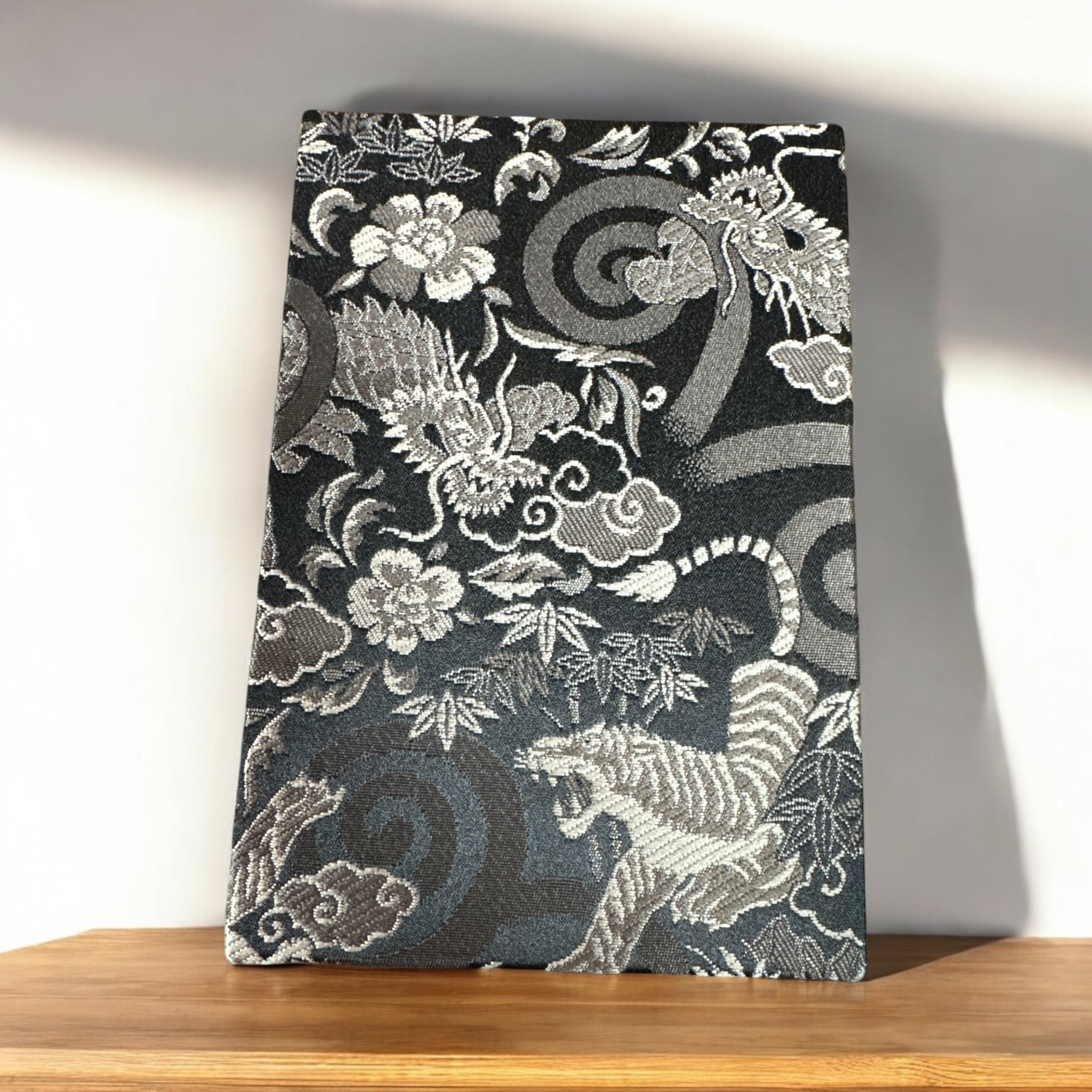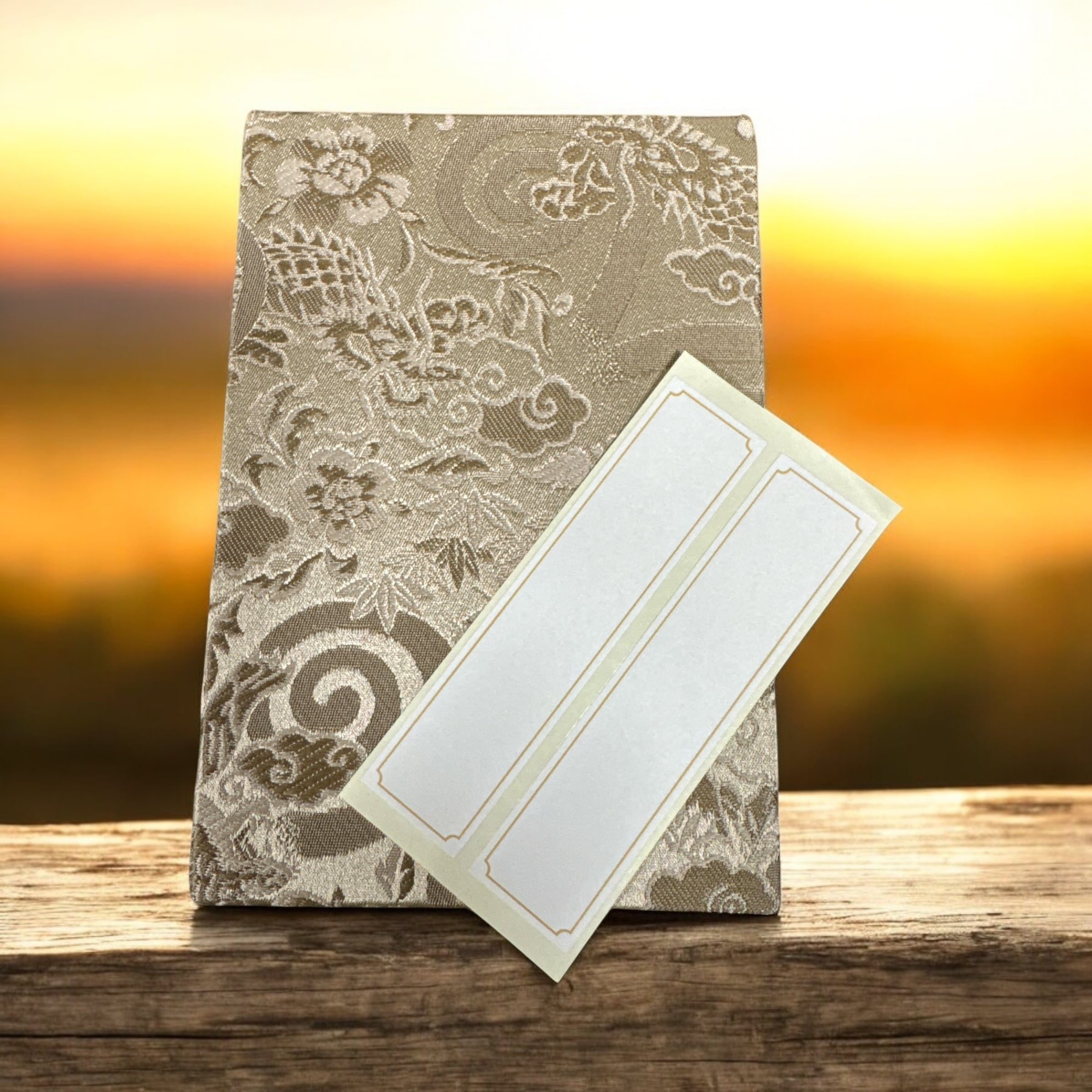 京都の伝統的な技術が詰まった西陣織金襴を使用した御朱印帳「龍虎」が新たにラインナップに加わりました!力強い龍と虎のデザインは、神社仏閣巡りに最適で、持つ人に勇気と活力を与えてくれます。持ち運びやすいサイズは縦16cm、横11cm。手にした瞬間、その美しい素材と色合いに心が躍ることでしょう。さらに、表題シールが2枚付属しているため、御朱印を整理するのも楽しくなります。神秘的で魅力的な一冊を、ぜひお手元に。