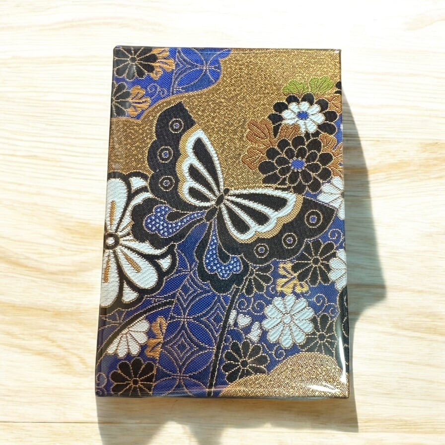 京都 西陣織 金襴 御朱印帳 蝶々 青