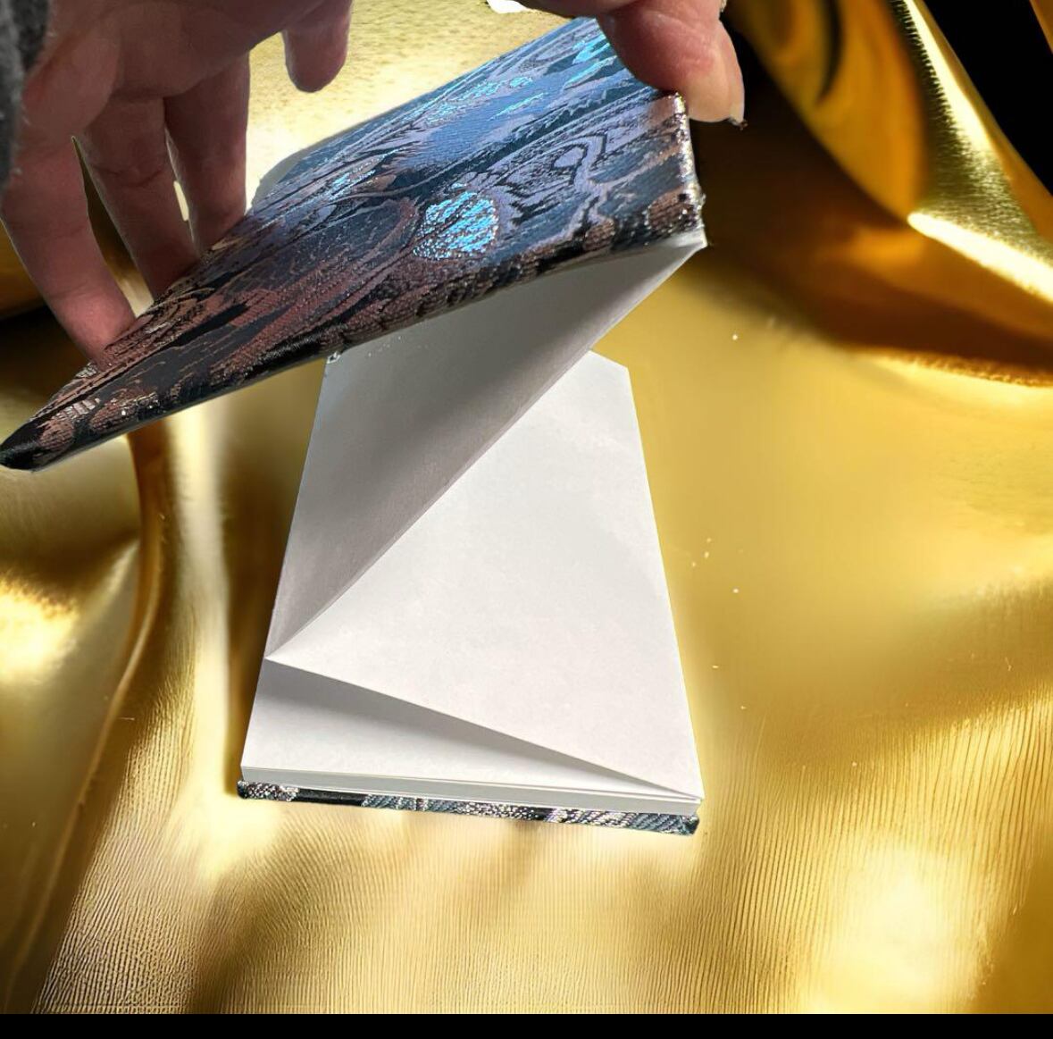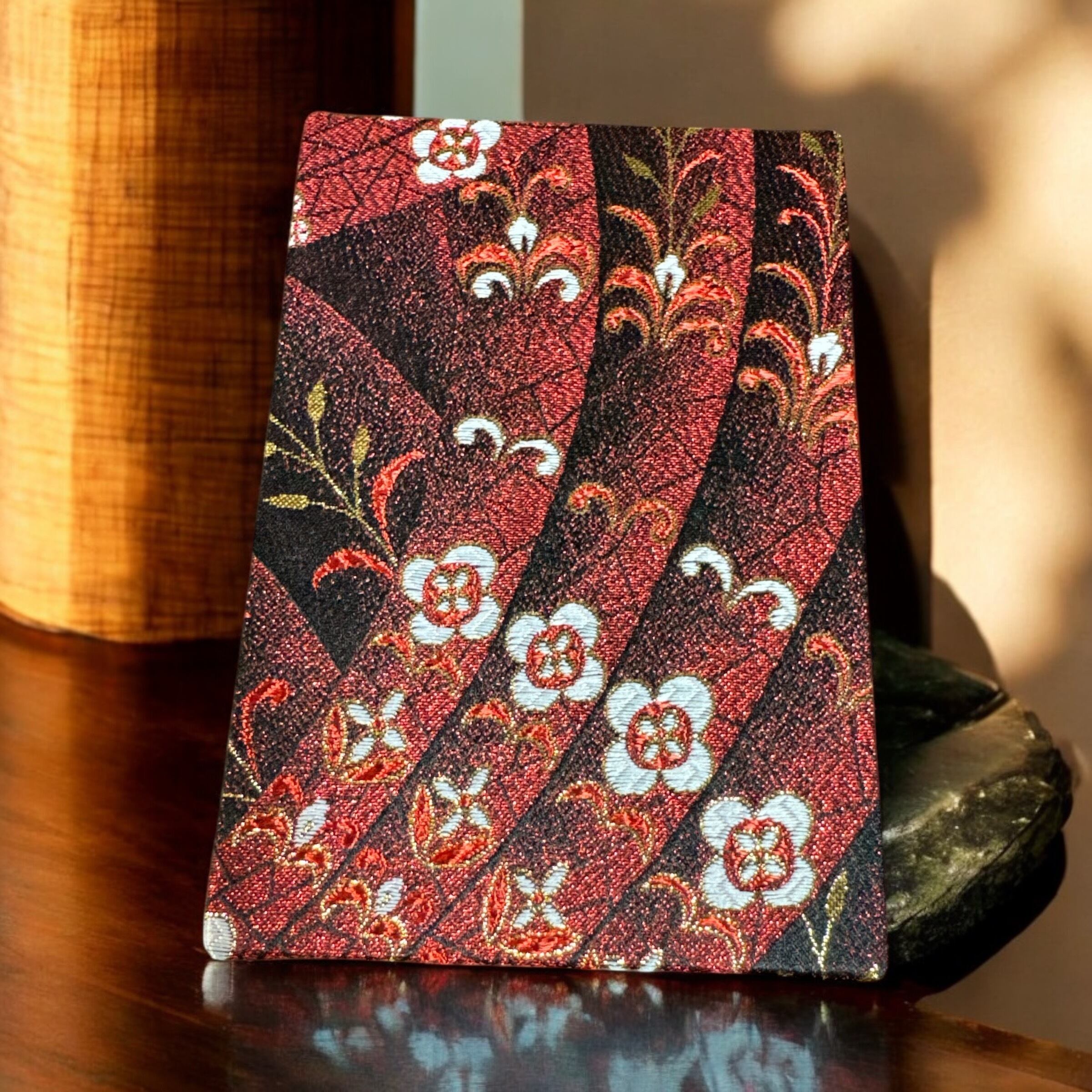 京都の伝統的な西陣織金襴を使用した御朱印帳「孔雀の羽」が新たに登場しました!優雅な孔雀の羽のデザインは、神社仏閣巡りに最適で、訪れる場所々での特別な思い出を美しく記録するのにぴったりです。サイズは縦16cm、横11cmで、手に取った瞬間、そのキラキラと輝くラメと高級感に心が躍ります。さらに、表題シールが2枚付属しており、ご自身のスタイルに合わせてお貼りいただけます。思い出の御朱印を華やかに収めるお手伝いをいたします!