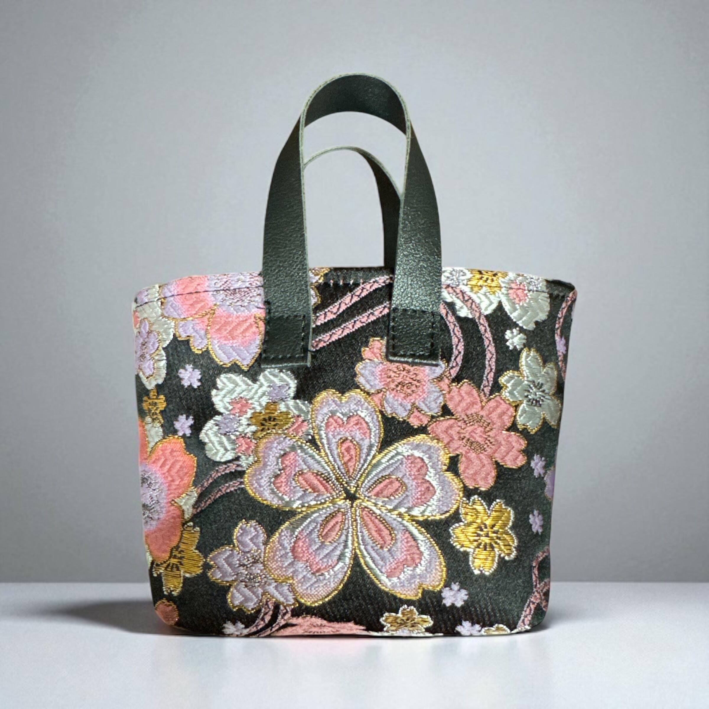 こちらは美しい京都の伝統技術によって作られた「西陣織 ミニバック 桜紫」です!淡い桜色に紫が調和したデザインは、シンプルながらも存在感があり、普段使いにぴったりです。手に取った瞬間、その上質な織りと温もりを感じられ、お出かけのハッピーな気分を引き立てます。このミニバックは、バックインバックとしても大変便利で、お化粧品や小物をおしゃれに持ち運ぶことができます。