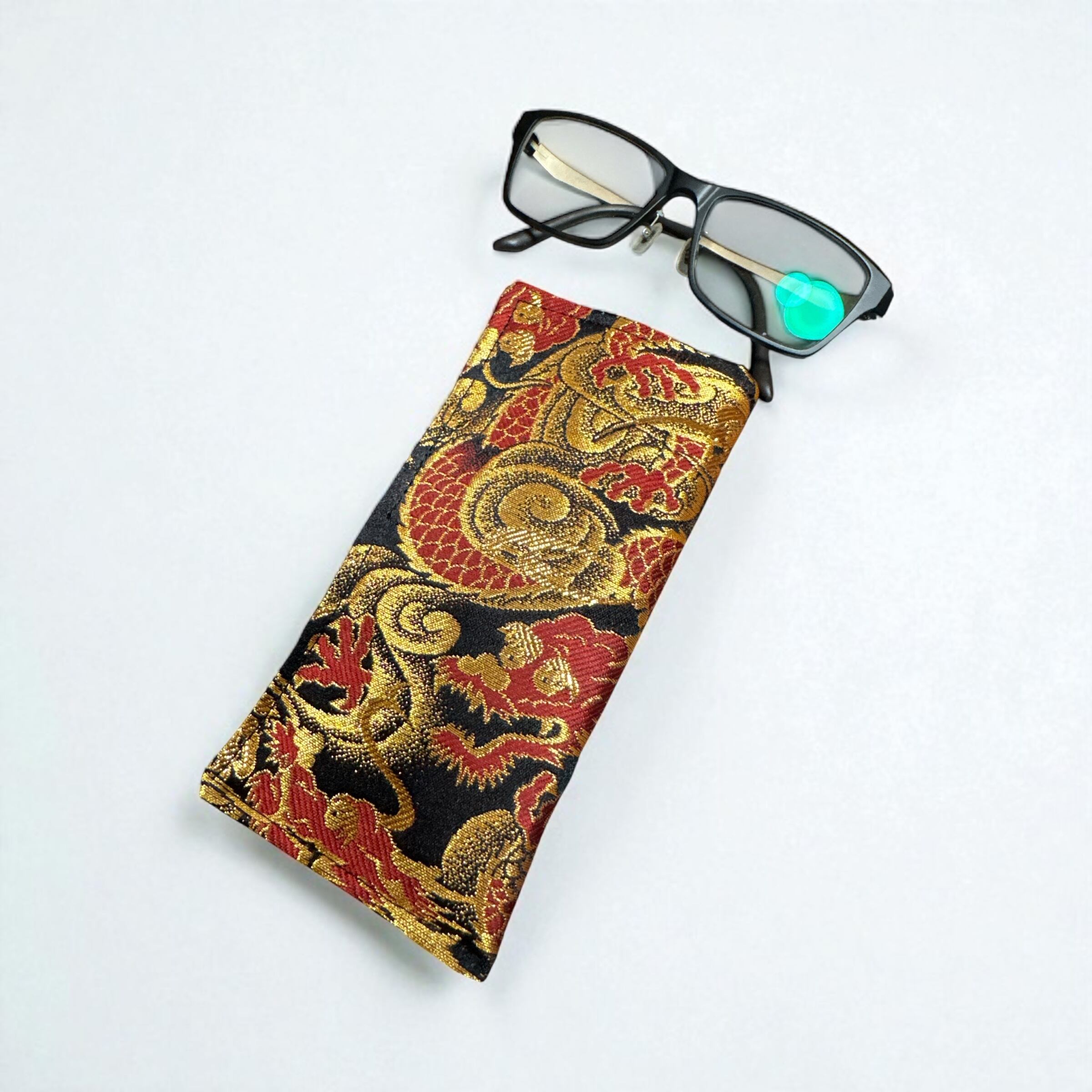 こちらは、伝統的な西陣織で仕立てられた「西陣織 メガネケース 赤龍」です!美しい赤龍の模様が施されており、特別なシーンはもちろん、日常使いにもぴったりです。手に取ると、その柔らかな質感と職人の丁寧な手仕事が感じられ、心がほっこりと和むことでしょう。このメガネケースは持ち運びにも便利なサイズで、大切なメガネをしっかりと収納できる安心の作りです。