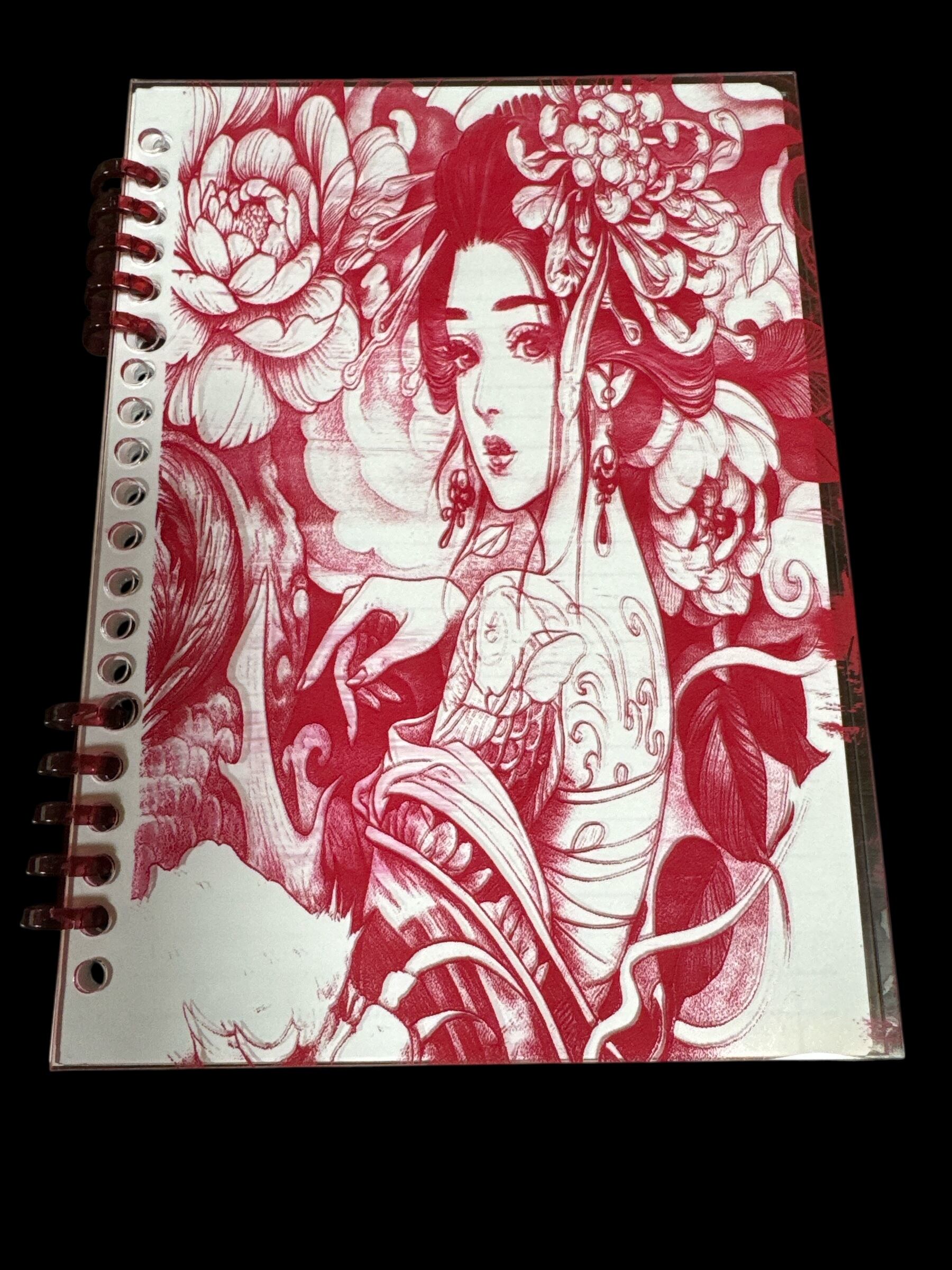 こちらは、美しい牡丹が染色された「アクリル製 花魁 メモ帳 牡丹 3色セット」です!華やかなデザインが魅力のこのメモ帳は、日常のメモや大切なアイデアを書き留めるのにぴったりのアイテムです。それぞれ手作りで染色されており、心を込めて作られた仕上がりとなっております。サイズはA5(21cm×15cm)で、持ち運びにも便利です。